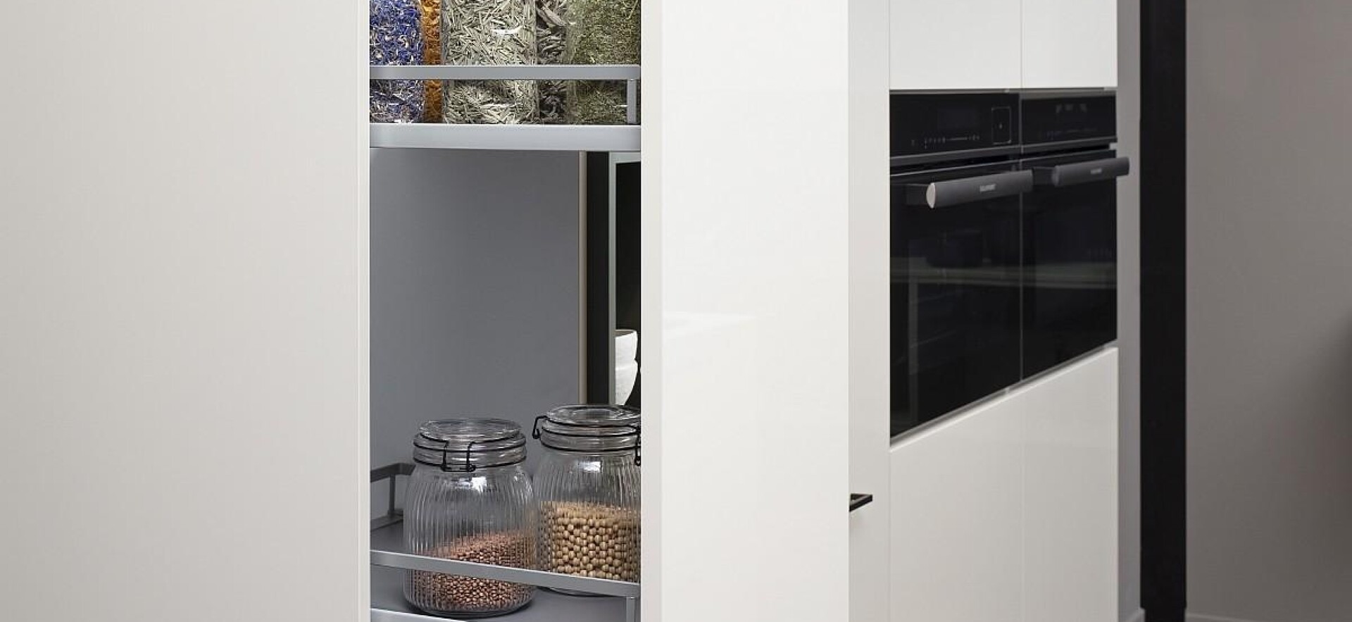 Die Organisation des Küchenstauraums hilft, ermüdungsfrei zu arbeiten. Das beinhaltet zum Beispiel Schubladen in den Unterschränken, die Ihnen das Bücken ersparen. Apothekerschränke bieten besonders einfachen Zugriff auf Vorräte.